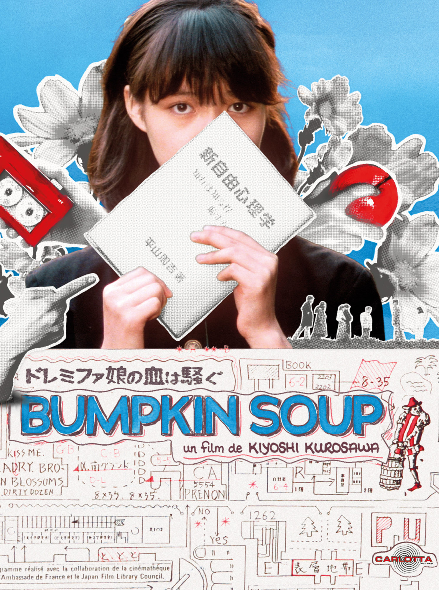 Bumpkin Soup est signé Kiyoshi Kurosawa, prolifique réalisateur nippon qui connaîtra bientôt une renommée internationale avec Cure, Kaïro, Tokyo Sonata ou le récent Cloud. Souvent à la limite de l’absurde, son film est un mélange explosif d’influences, allant du cinéma japonais de la fin des années 1960, en particulier Seijun Suzuki et Nagisa Oshima, jusqu’aux Nouvelles Vagues française et tchèque.