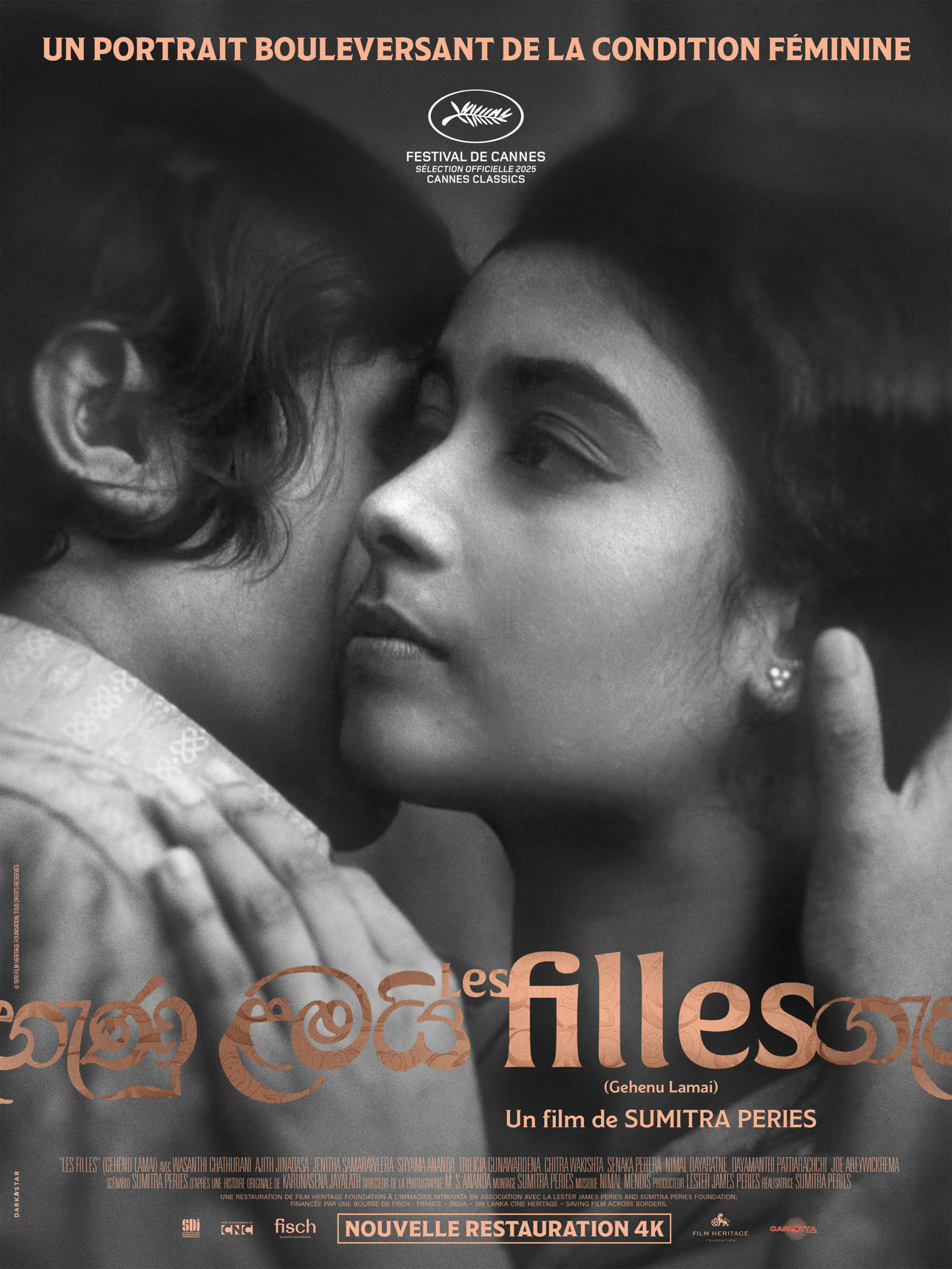 Premier film de la réalisatrice Sumitra Peries mais aussi premier film tourné par une femme au Sri Lanka, Les Filles dresse un portrait sensible de la condition féminine dans son pays, à travers le destin de la jeune Kusum et de sa sœur Somey. Optant pour une mise en scène tout en délicatesse, au noir et blanc empreint de poésie et de sensualité, la cinéaste révèle les dilemnes auxquels sont confrontées ses deux héroïnes, constamment tiraillées entre conformisme et émancipation, et dont les rêves de vie meilleure finissent broyés sous le poids de la tradition, de la moralité et du patriarcat. Dans le rôle de Kusum, la débutante Wasanthi Chathurani crève l’écran de sa beauté gracile et incarne à merveille la voix réduite au silence des jeunes femmes contraintes au renoncement. Véritable coup de maître de la réalisatrice Sumitra Peries qui marqua son époque et participa à la découverte du cinéma sri-lankais à l’international, Les Filles est à découvrir pour la première fois en France dans sa splendide restauration 4K !