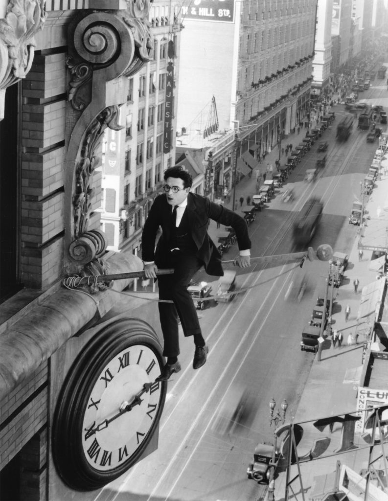 Véritable icône du burlesque américain, Harold Lloyd a joué dans plus de deux cents comédies sur une période de trente-quatre ans : Monte là-dessus, avec sa séquence d’anthologie où l’acteur escalade un building et se trouve suspendu à une horloge géante, reste unanimement considéré comme son chef-d’oeuvre. Cette scène est non seulement une merveille d’humour mais également un tour de force en matière de scénario : à l’action physique s’ajoutent un suspense constamment relancé et des gags toujours nouveaux. Mais Monte là-dessus, c’est aussi un témoignage sur l’urbanisation et la modernisation de l’Amérique avant la crise de 1929, entre essor de la classe moyenne et développement de la société de consommation. -